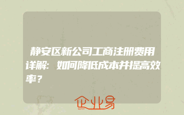 - 静安区新公司工商注册费用详解:如何降低成本并提高效率?