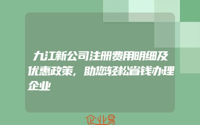 - 九江新公司注册费用明细及优惠政策,助您轻松省钱办理企业