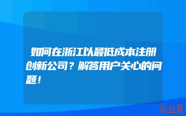 - 如何在浙江以最低成本注册创新公司?解答用户关心的问题!