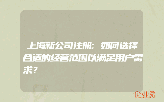 - 上海新公司注册:如何选择合适的经营范围以满足用户需求?
