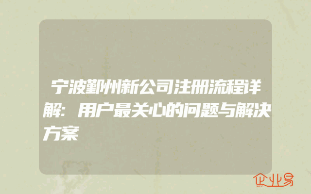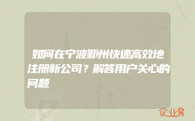 - 如何在宁波鄞州快速高效地注册新公司?解答用户关心的问题
