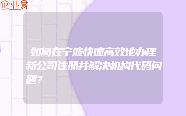 - 如何在宁波快速高效地办理新公司注册并解决机构代码问题?