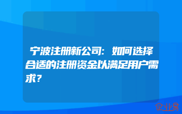 - 宁波注册新公司:如何选择合适的注册资金以满足用户需求?