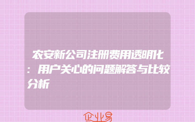 - 农安新公司注册费用透明化:用户关心的问题解答与比较分析