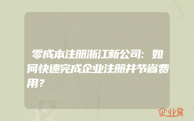 - 零成本注册浙江新公司:如何快速完成企业注册并节省费用?