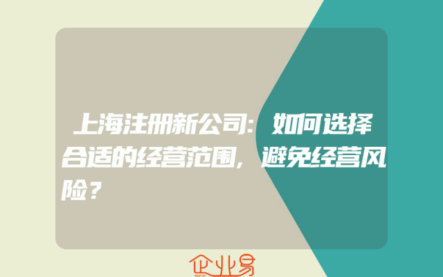 - 上海注册新公司:如何选择合适的经营范围,避免经营风险?