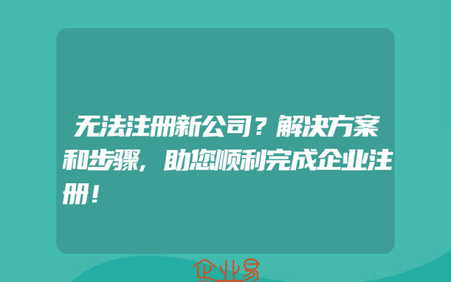 - 无法注册新公司?解决方案和步骤,助您顺利完成企业注册!在创业的道路上,注册公司是第一步。然而,有时候这个过程可能会遇到一些问题,比如无法注册新公司。这可能是因为各种原因,如资料不全、流程不清等。本文将为您提供一些解决方案和步骤,帮助您顺利