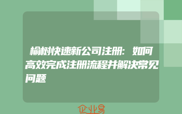 - 榆树快速新公司注册:如何高效完成注册流程并解决常见问题
