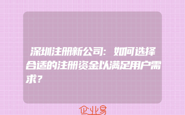 - 深圳注册新公司:如何选择合适的注册资金以满足用户需求?