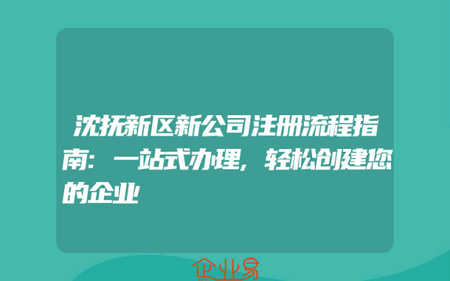 - 沈抚新区新公司注册流程指南:一站式办理,轻松创建您的企业