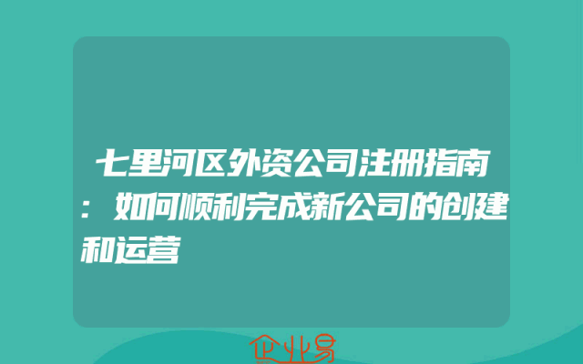 - 七里河区外资公司注册指南:如何顺利完成新公司的创建和运营