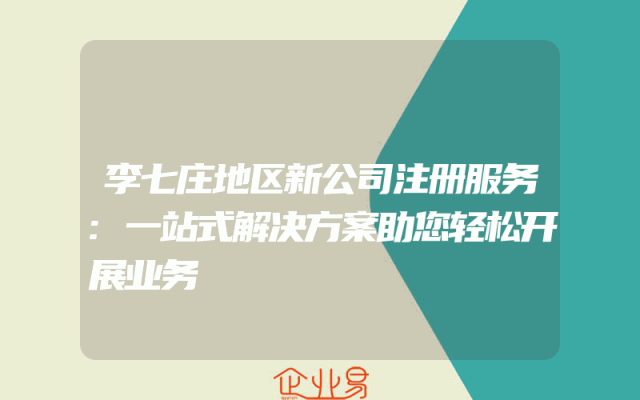- 李七庄地区新公司注册服务:一站式解决方案助您轻松开展业务