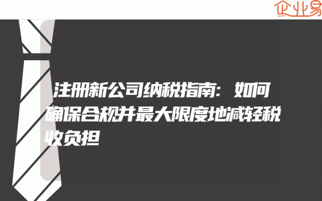 - 注册新公司纳税指南:如何确保合规并最大限度地减轻税收负担