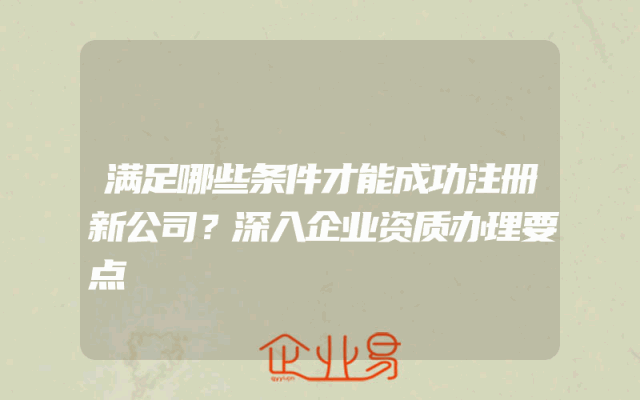 - 满足哪些条件才能成功注册新公司?深入企业资质办理要点