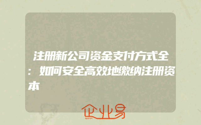 - 注册新公司资金支付方式全:如何安全高效地缴纳注册资本