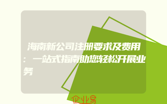 - 海南新公司注册要求及费用:一站式指南助您轻松开展业务