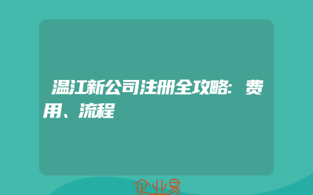 - 温江新公司注册全攻略:费用、流程一网打尽,让您轻松创业!在成都的温江区,许多创业者都希望能够在这里开启自己的事业。然而,对于初次接触企业注册的人来说,可能会对繁琐的流程和高昂的费用感到困惑。本文将为您提供一份详细的温江新公司注册攻略,帮助您