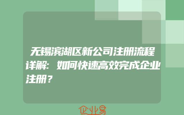 - 无锡滨湖区新公司注册流程详解:如何快速高效完成企业注册?