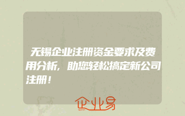 - 无锡企业注册资金要求及费用分析,助您轻松搞定新公司注册!