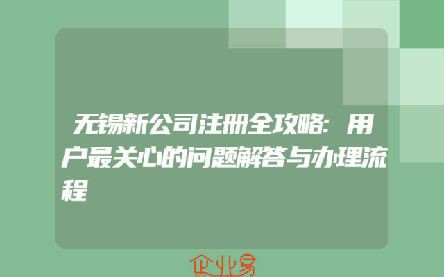 - 无锡新公司注册全攻略:用户最关心的问题解答与办理流程