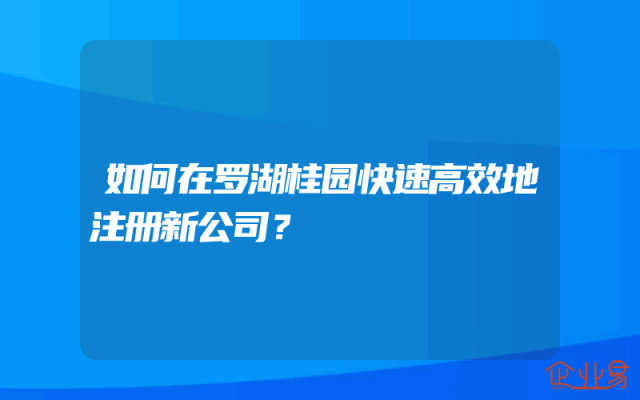 - 在罗湖桂园快速高效地注册新公司?解答用户最关心的问题在深圳市罗湖区,桂园是一个知名的商业区域,吸引了众多企业在此设立办公地点。然而,对于初次创业者来说,如何在罗湖桂园快速高效地注册新公司可能是一个令人头疼的问题。本文将为您解答关于在罗湖桂