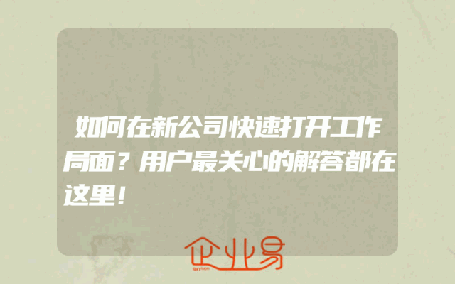 - 如何在新公司快速打开工作局面?用户最关心的解答都在这里!