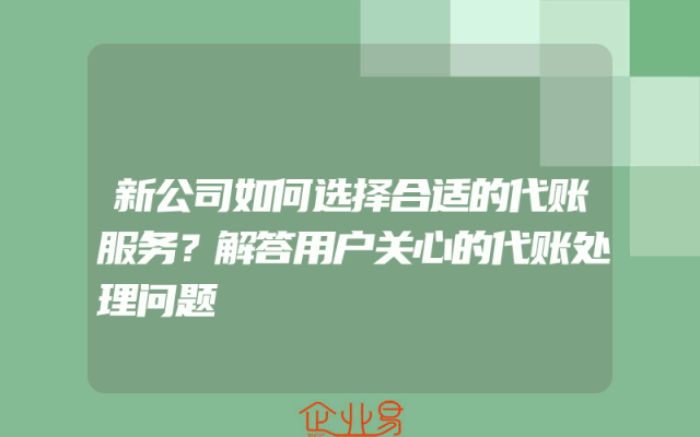 - 新公司如何选择合适的代账服务?解答用户关心的代账处理问题