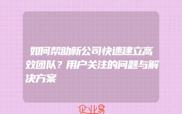 - 如何帮助新公司快速建立高效团队?用户关注的问题与解决方案