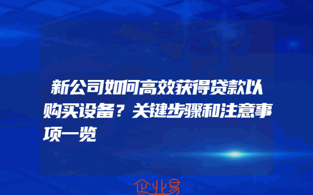 - 新公司如何高效获得贷款以购买设备?关键步骤和注意事项一览