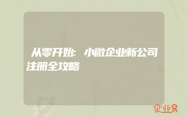 - 从零开始:小微企业新公司注册全攻略,解答用户最关心的问题随着经济的发展,越来越多的人选择创业,开设自己的公司。对于小微企业来说,新公司注册是一个重要的环节。本文将为您提供一份从零开始的小微企业新公司注册全攻略,解答您最关心的问题。一、了解企