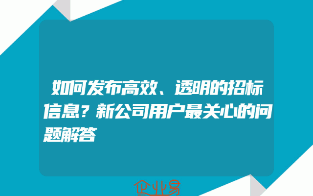 - 如何发布高效、透明的招标信息?新公司用户最关心的问题解答