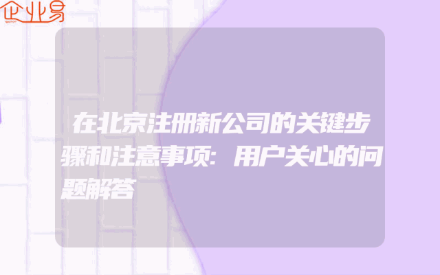 - 在北京注册新公司的关键步骤和注意事项:用户关心的问题解答