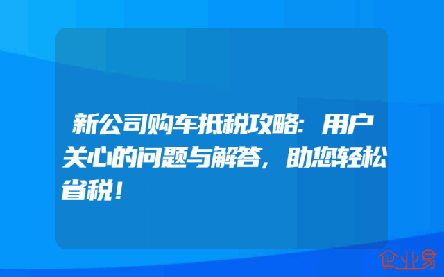 - 新公司购车抵税攻略:用户关心的问题与解答,助您轻松省税!