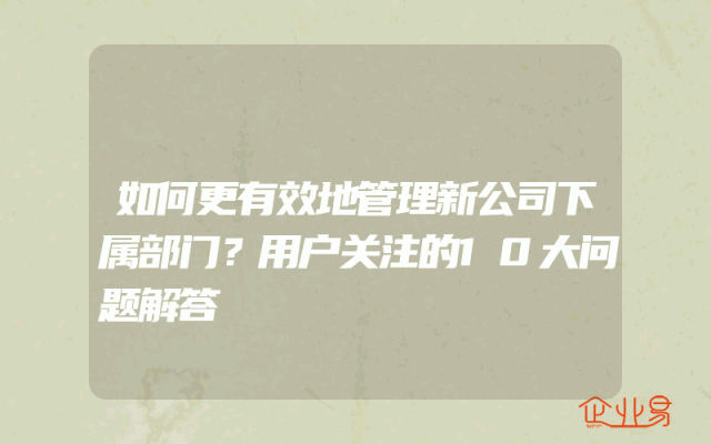 - 如何更有效地管理新公司下属部门?用户关注的10大问题解答