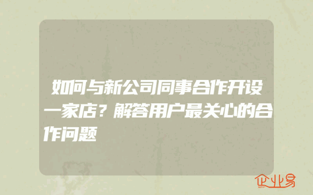 - 如何与新公司同事合作开设一家店?解答用户最关心的合作问题