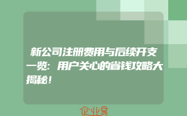 - 新公司注册费用与后续开支一览:用户关心的省钱攻略大揭秘!