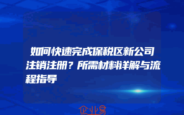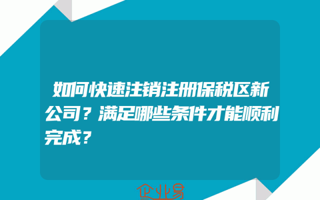 - 如何快速注销注册保税区新公司?满足哪些条件才能顺利完成?