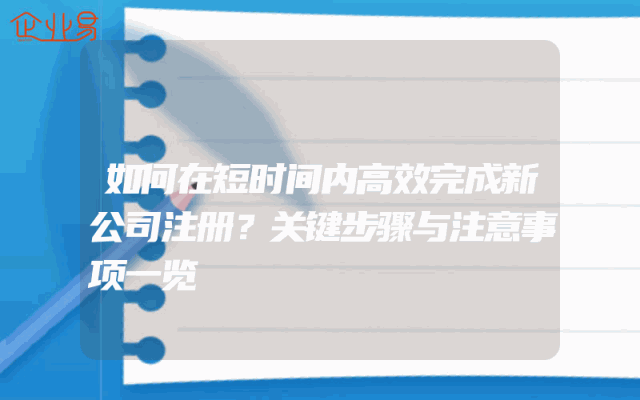 - 如何在短时间内高效完成新公司注册?关键步骤与注意事项一览在当今的商业环境中,注册新公司已经成为许多创业者的首选。然而,繁琐的公司注册流程和漫长的等待时间可能会让人感到头疼。如果你希望在短时间内高效完成新公司注册,那么这篇文章将会为你提供一些