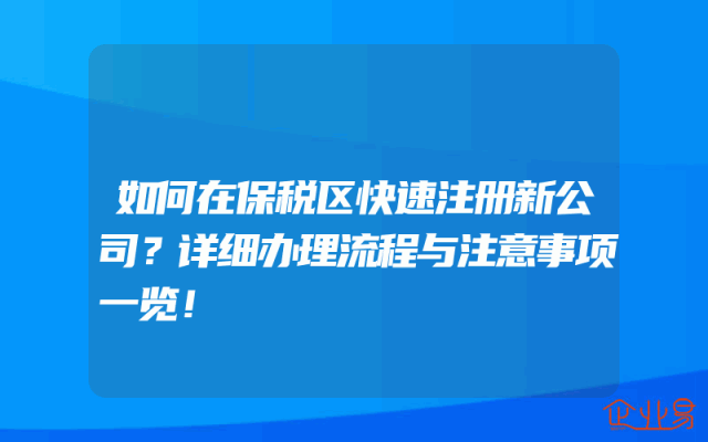 - 如何在保税区快速注册新公司?详细办理流程与注意事项一览!