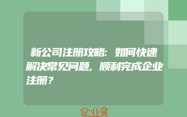 - 新公司注册攻略:如何快速解决常见问题,顺利完成企业注册?