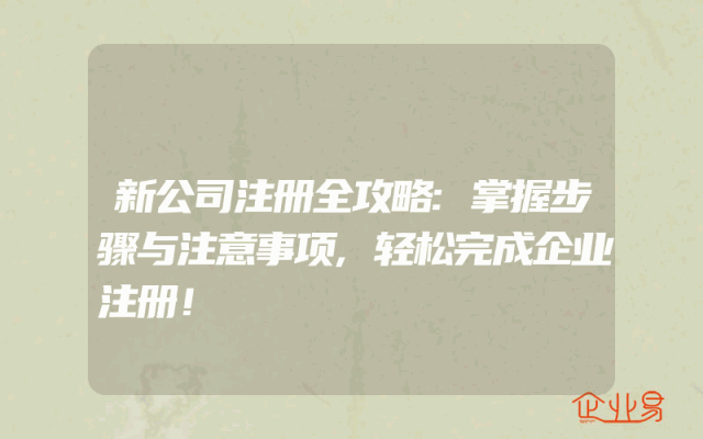 - 新公司注册全攻略:掌握步骤与注意事项,轻松完成企业注册!在当今社会,创业已经成为了许多人的选择。无论是想要实现自己的梦想,还是为了创造更多的就业机会,新公司的注册都是一个必不可少的步骤。然而,对于初次创业者来说,新公司注册的过程可能会显得繁