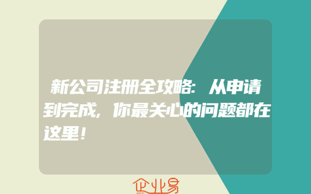 - 新公司注册全攻略:从申请到完成,你最关心的问题都在这里!在创业的道路上,公司注册是一个重要的环节。对于初创企业来说,如何顺利完成公司注册,避免繁琐的流程和费用,是他们最关心的问题。本文将为你提供一份详细的新公司注册全攻略,从申请到完成,解