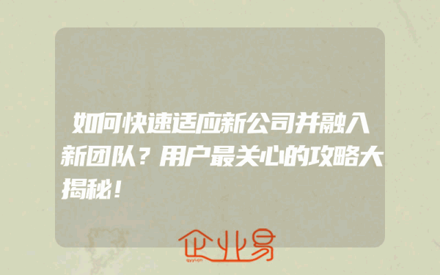 - 如何快速适应新公司并融入新团队?用户最关心的攻略大揭秘!