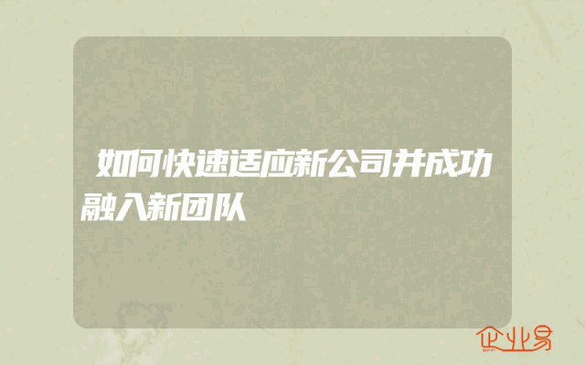 - 如何快速适应新公司并成功融入新团队