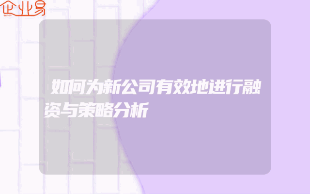 - 如何为新公司有效地进行融资与策略分析