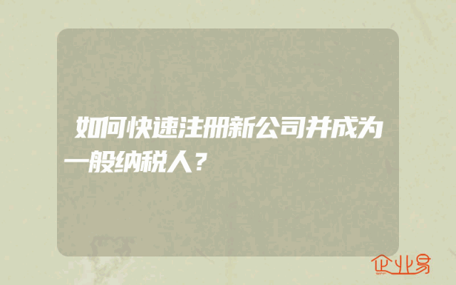 - 如何快速注册新公司并成为一般纳税人?