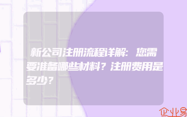 - 新公司注册流程详解:您需要准备哪些材料?注册费用是多少?