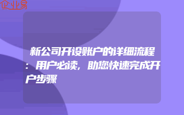 - 新公司开设账户的详细流程:用户必读,助您快速完成开户步骤