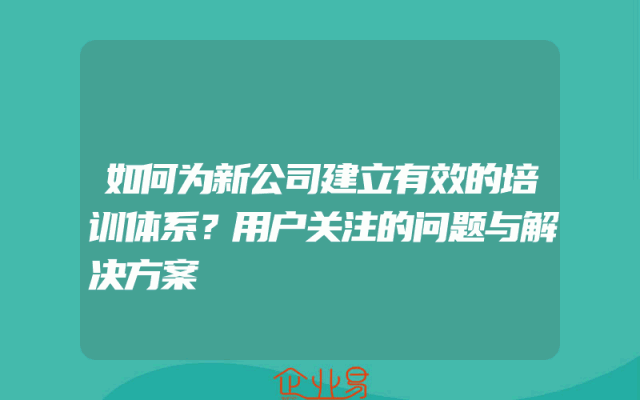 - 如何为新公司建立有效的培训体系?用户关注的问题与解决方案