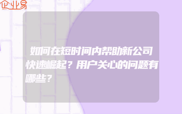 - 如何在短时间内帮助新公司快速崛起?用户关心的问题有哪些?